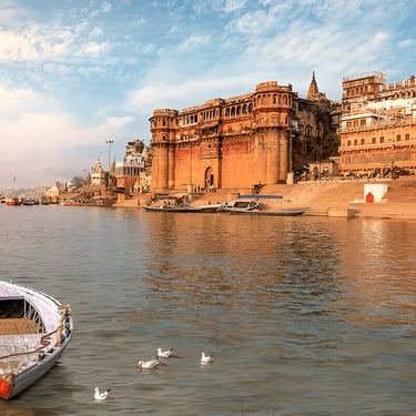 Your Varanasi tour begins early in the morning with a comfortable pick-up from your hotel. As dawn approaches, you will be driven to the ghats of the holy Ganges, where the city slowly awakens with the sound of temple bells, devotional chants, and the fragrance of incense filling the air.